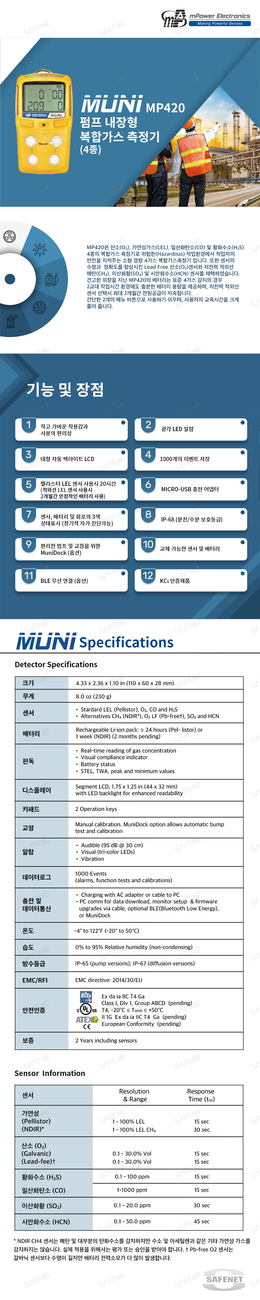 MUNI MP420 펌프 내장형 복합가스 측정기(4종)