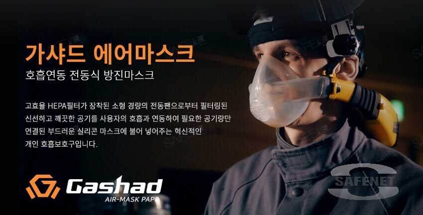 제품소개 고효율 HEPA 필터가 장착된 소형 경량의 전동팬으로부터 필터링된 신선하고 깨끗한 공기를 사용자의 호흡과 연동하여 필요한 공기량만 연결된 부드러운 실리콘 마스크에 불어넣어 주는 혁신적인 개인 호흡보호구 입니다.