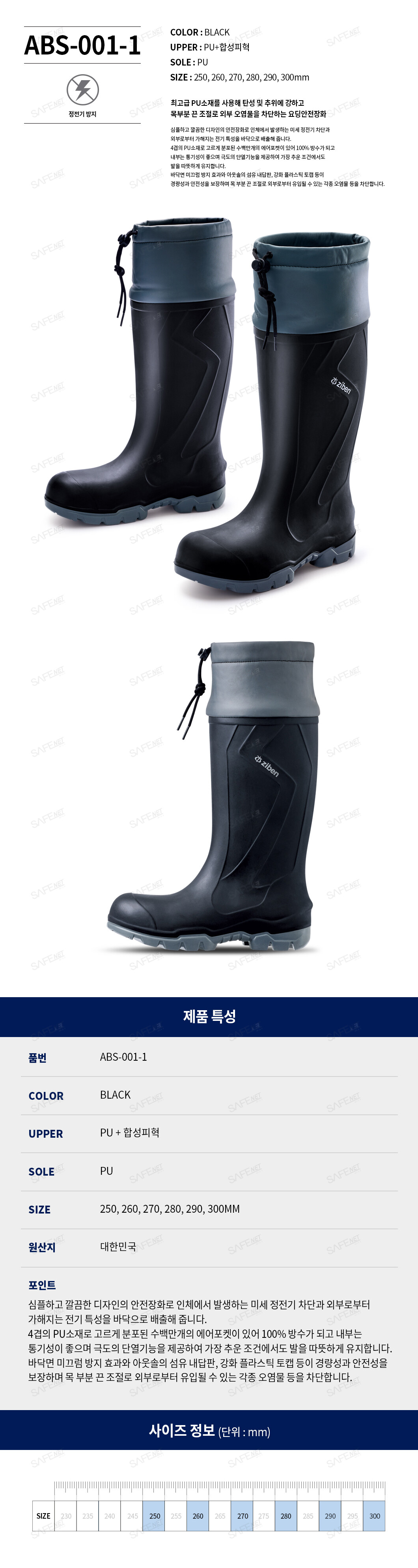 규격 PU+합성피혁 / 내유용 / 230,240,250,260,270,280,290 ,300mm