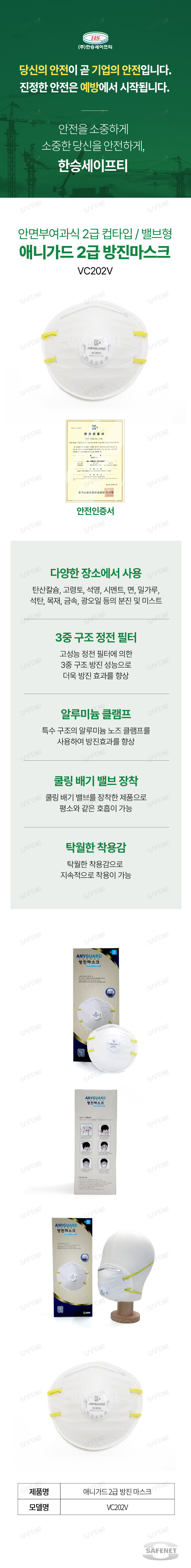 애니가드 2급 방진마스크 VC202V - 다양한 장소에 사용 - 3중 구조 정전 필터 - 알루미늄 클램프 - 쿨링 배기 밸브 장착 - 탁월한 착용감