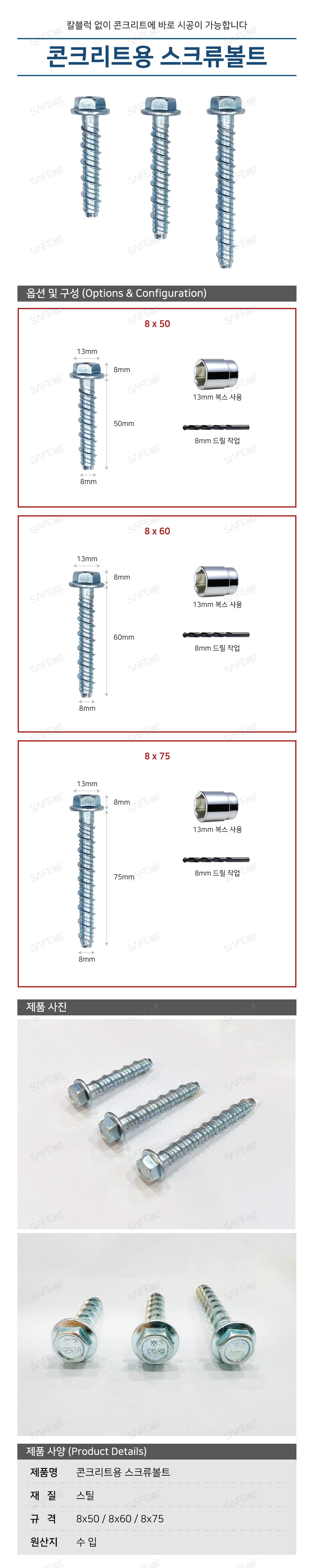 규격 8*50, 8*60, 8*75 / 스틸 재질