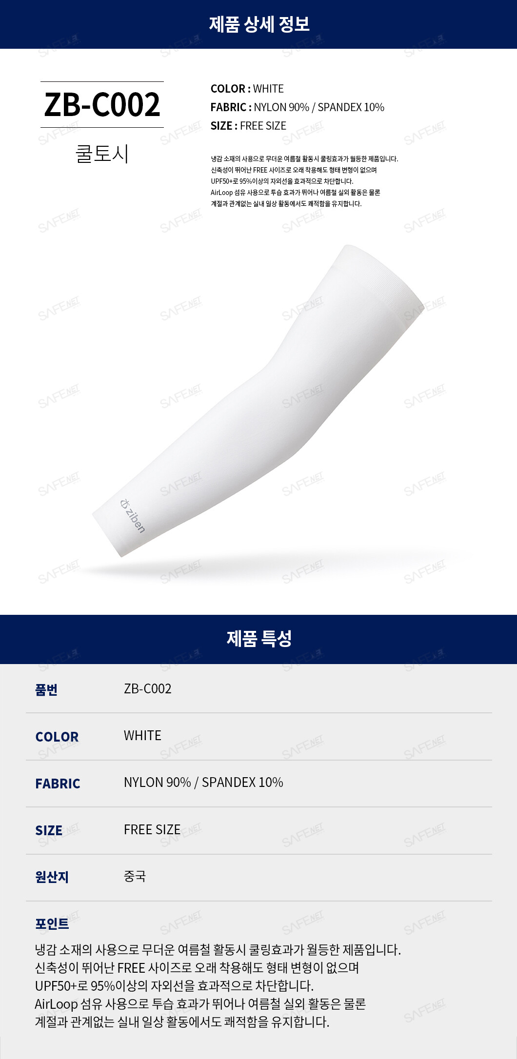 규격 나일론 90%, 스판덱스 10% / 화이트