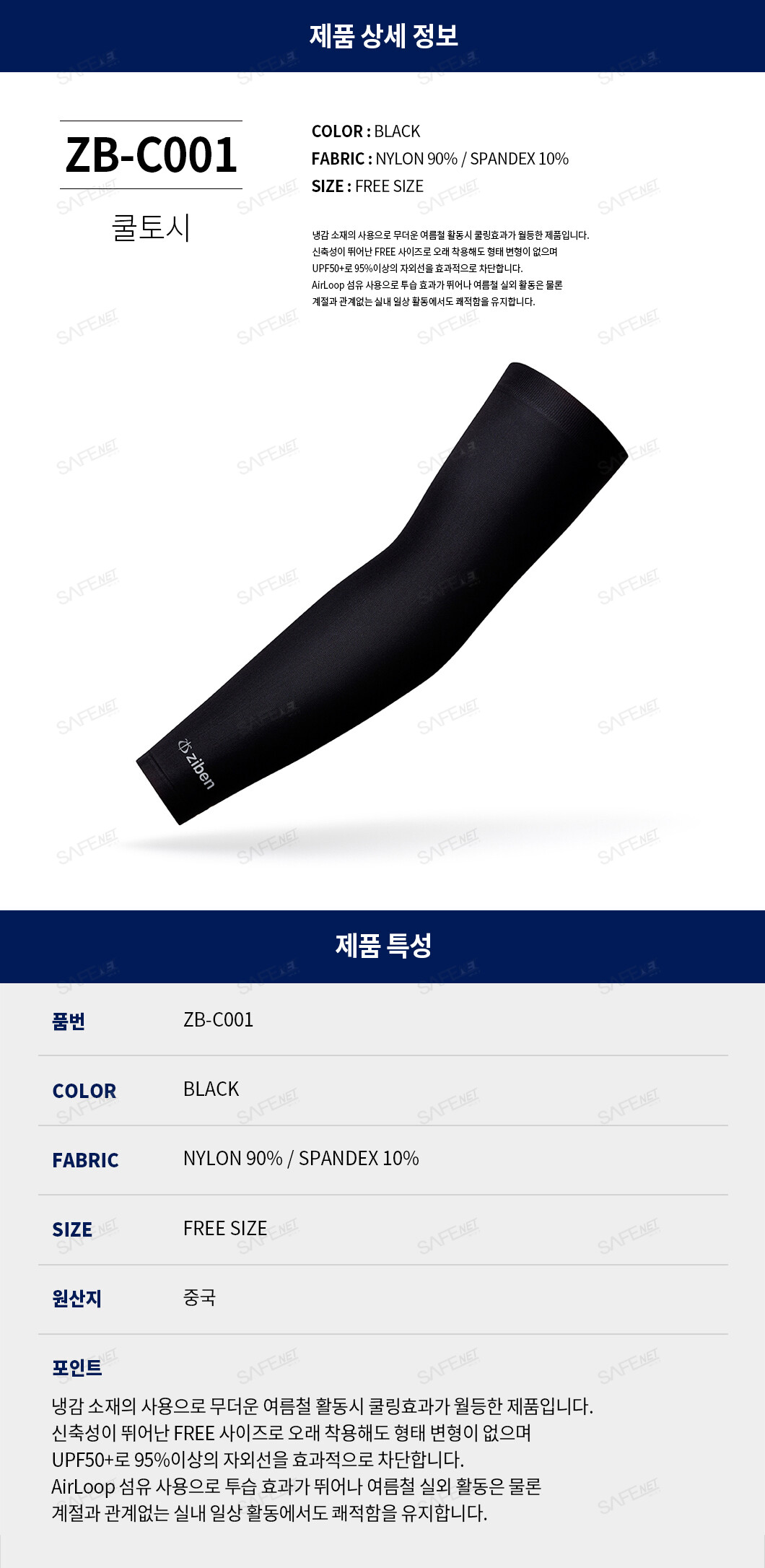 1. 냉감소재 사용으로 무더운 여름철 활동 시 쿨링효과가 월등함