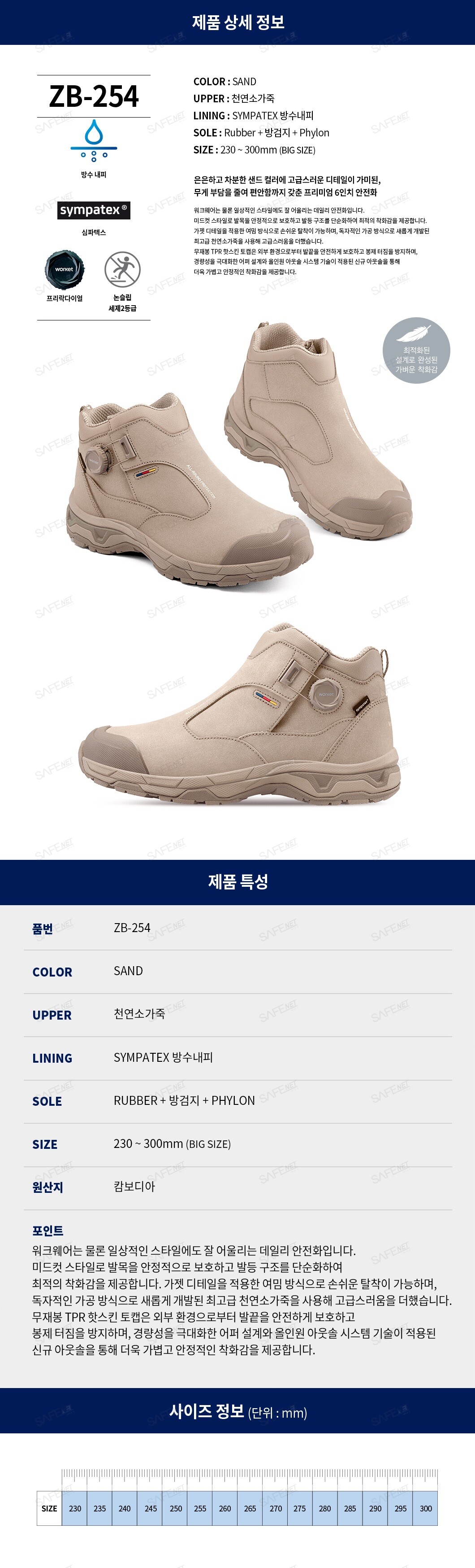 워킷 안전화 ZB-254 (논슬립/다이얼)