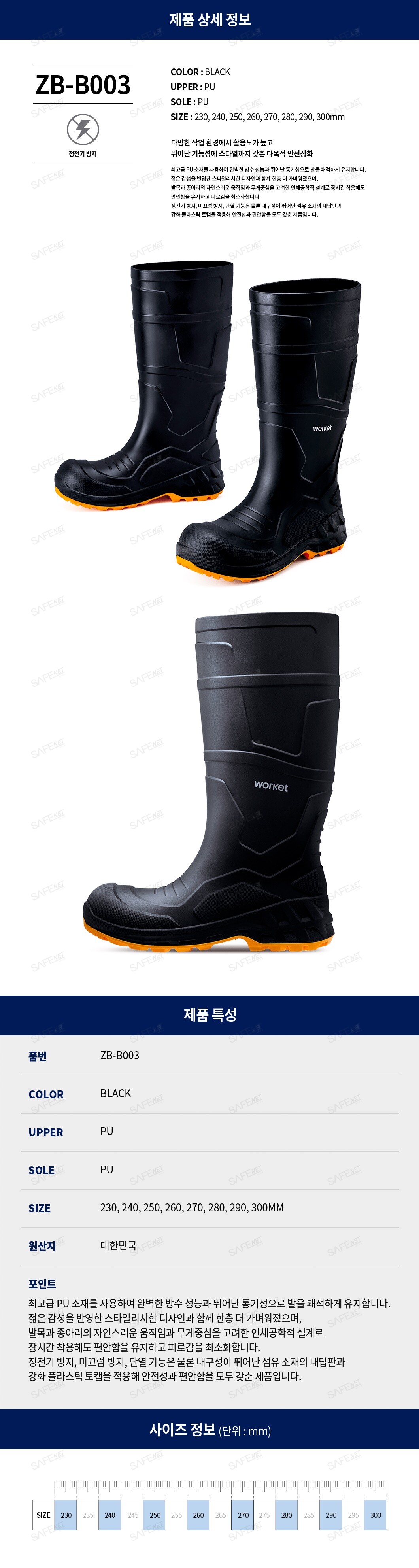 워킷 안전장화 ZB-B003