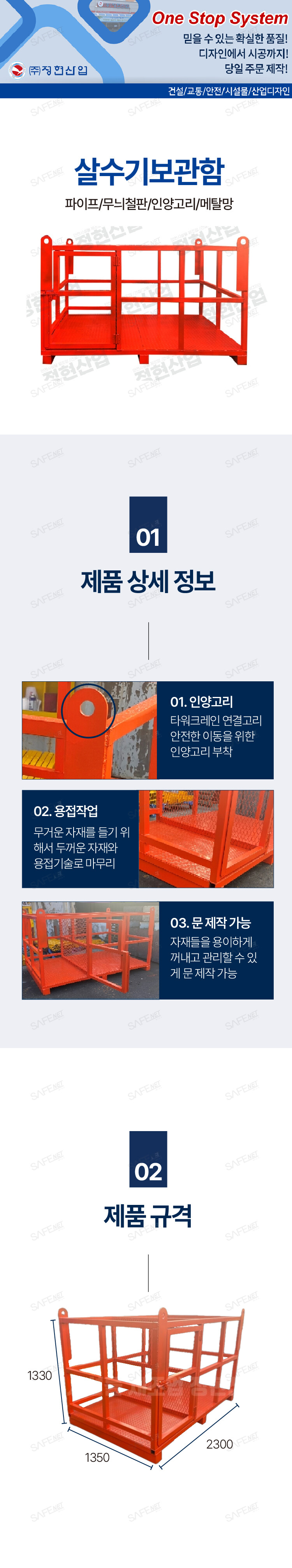 규격 2300 * 1350 * H1330 / 무늬철판 / 메탈망 / 인양고리