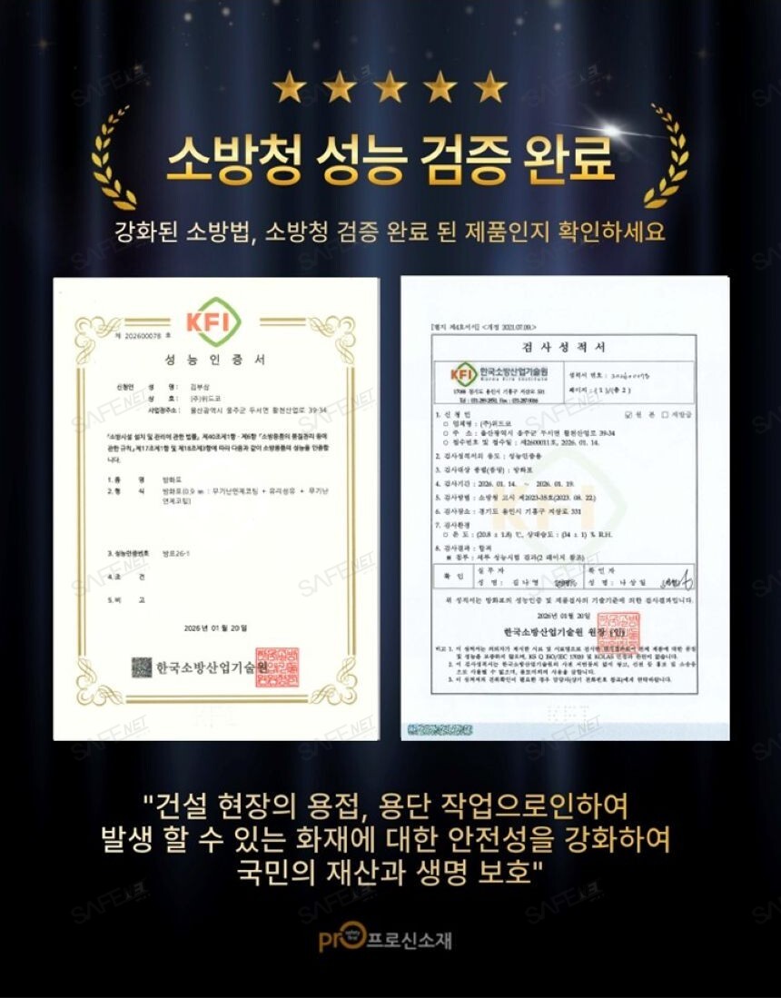 규격 온도 1200℃ / KFI 인증 제품