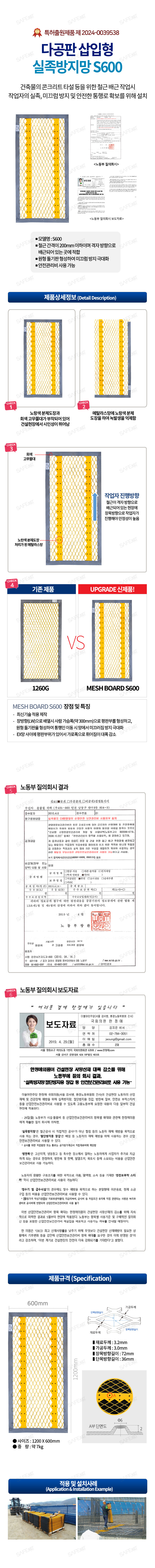 다공판 삽입형 실족방지망 S600