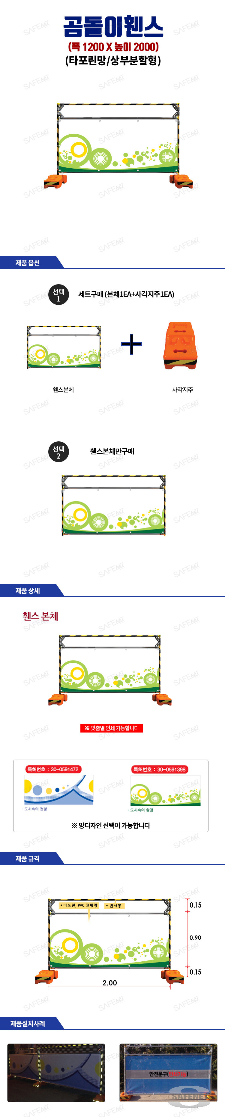 규격 H1200 X W2000mm / 타포린망 / 상부분할형 / 곰돌이지주(사각시멘지주)