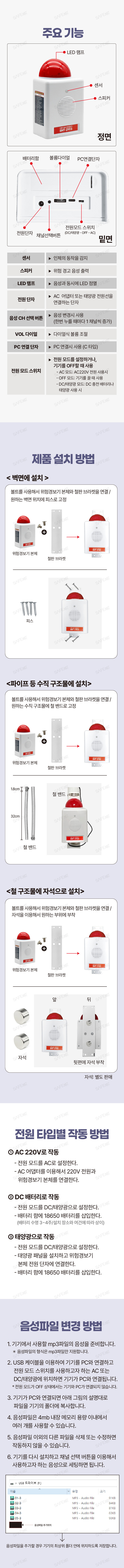 - AC220V 타입 / DC 충전 배터리 타입 / 쏠라 태양광 타입