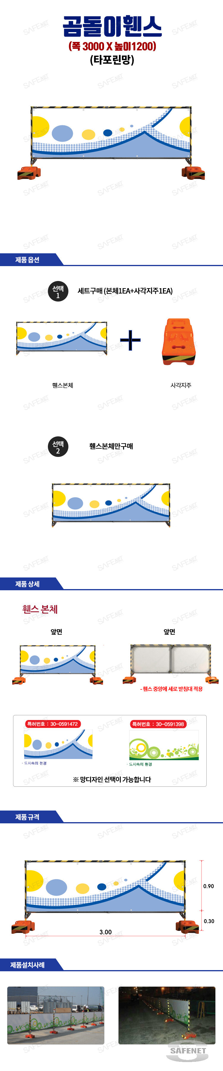 규격 H1200 X W3000mm / 타포린망 / 휀스중앙세로방향보강대 / 곰돌이지주(사각시멘지주)