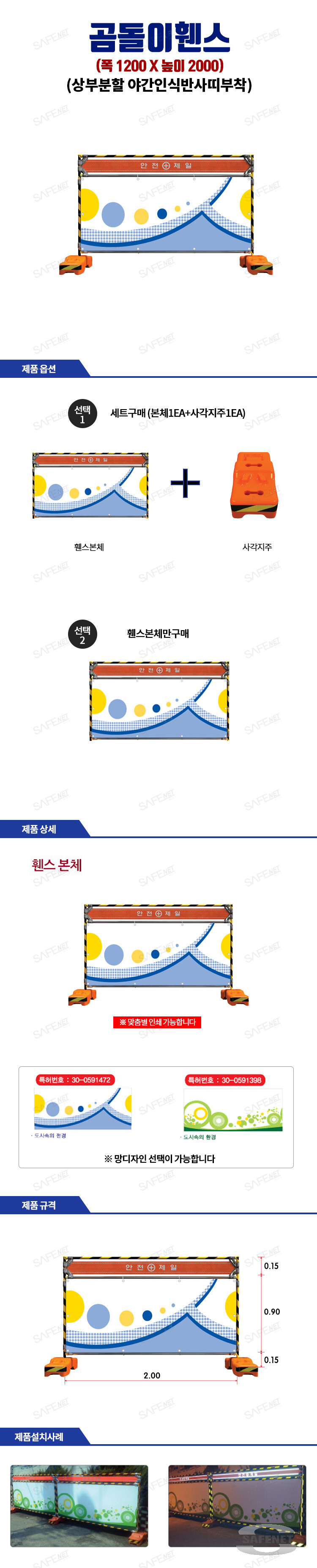 곰돌이반사봉휀스 H1200 X W2000 (상부분할 야간인식반사띠부착)