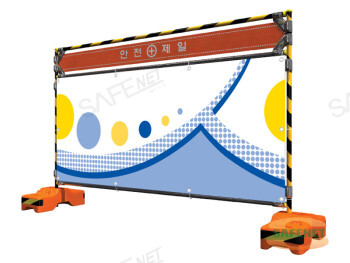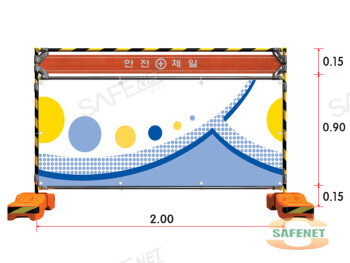 규격 H1200 X W2000mm / 타포린망 / 상부분할형-야간인식반사띠부착 / 곰돌이지주(사각시멘지주)