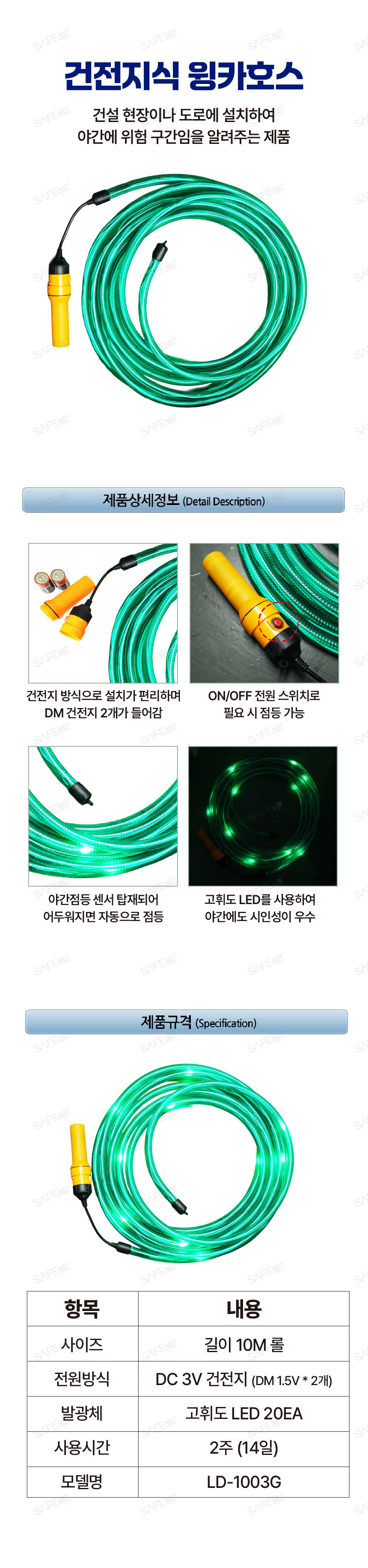 규격 길이 10M / DC 3V 건전지 / 고휘도 LED 20개 / 2주