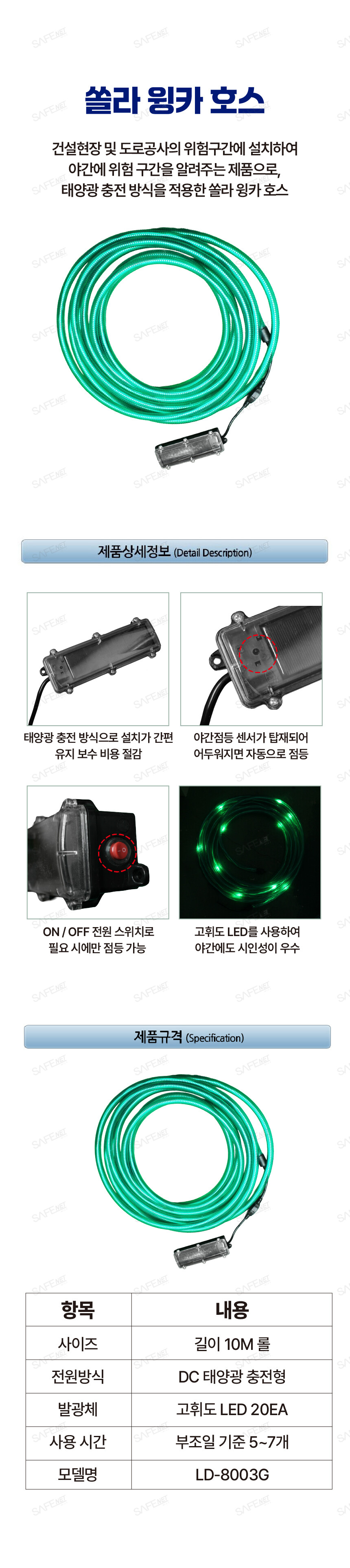 규격 길이 10M / DC 태양광 충전형 / 고휘도 LED 20개 / 센서 감지 야간 자동 점등형