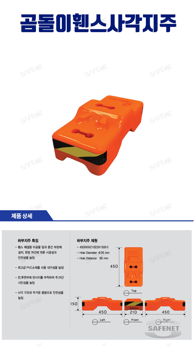 - 휀스 체결용 타공을 앞과 중간 부분에 설치, 현장 여건에 따른 시공성과 안전성을 높임
