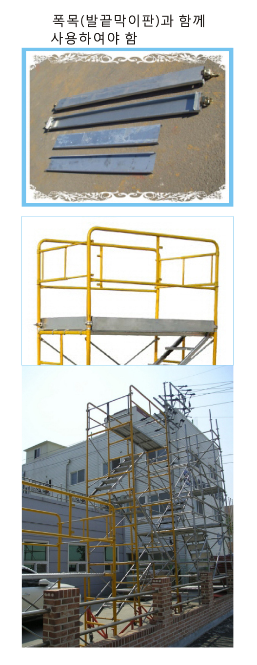 - 이동식(BT)비계 주틀 상부에 설치 사용하는 안전난간대
