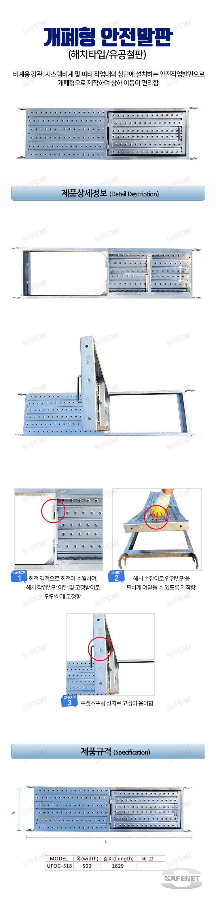 개폐형안전발판 (해치타입/유공철판) 500 X 1829