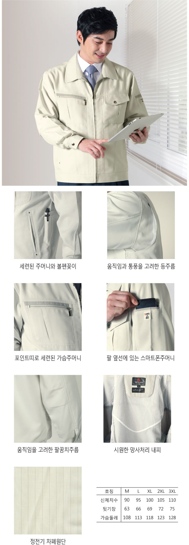 티뷰크 신제품은 고급스러운 원단 외면에 정전기 차폐 원단을 사용하고 움직임과 통풍의 기능을 더한 제품으로 디자인과 착용감, 그리고 편리함을 최대한 고려한 제품입니다.