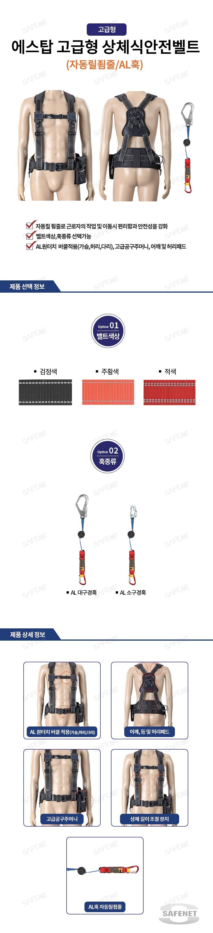 에스탑 고급형 상체식안전벨트 (자동죔줄/AL훅)