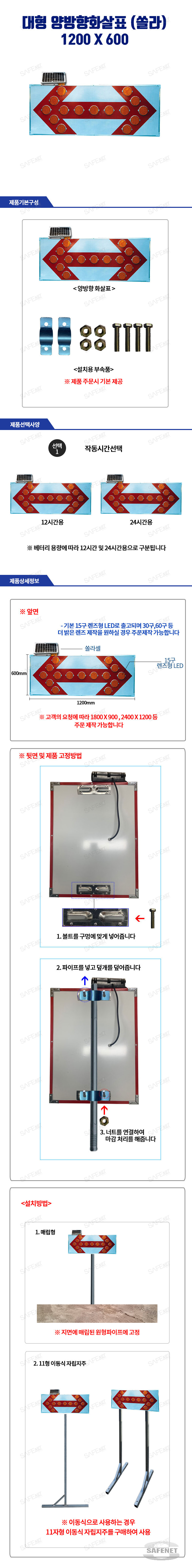 규격 1200 X 600mm / 쏠라 / 양방향화살표 / 6구 렌즈형 LED / 백색 반사지