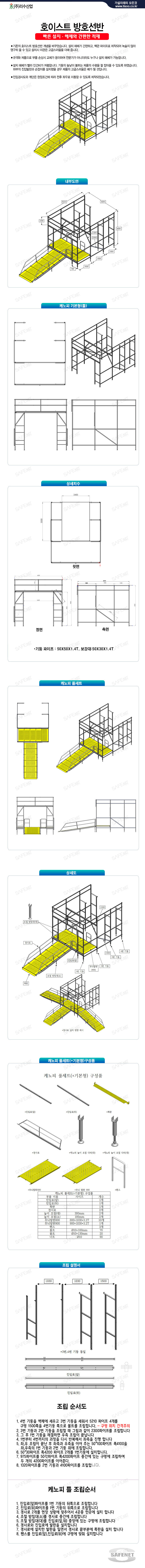 - 설치 해체가 빨라 인건비가 저렴합니다. 기둥의 높낮이 볼트는 제품의 수평을 잘 잡아줄수 있도록 하였습니다. 하부의 진입발판과 손잡이를 설치했을 경우 제품의 고급스러움은 배가 될 것입니다.