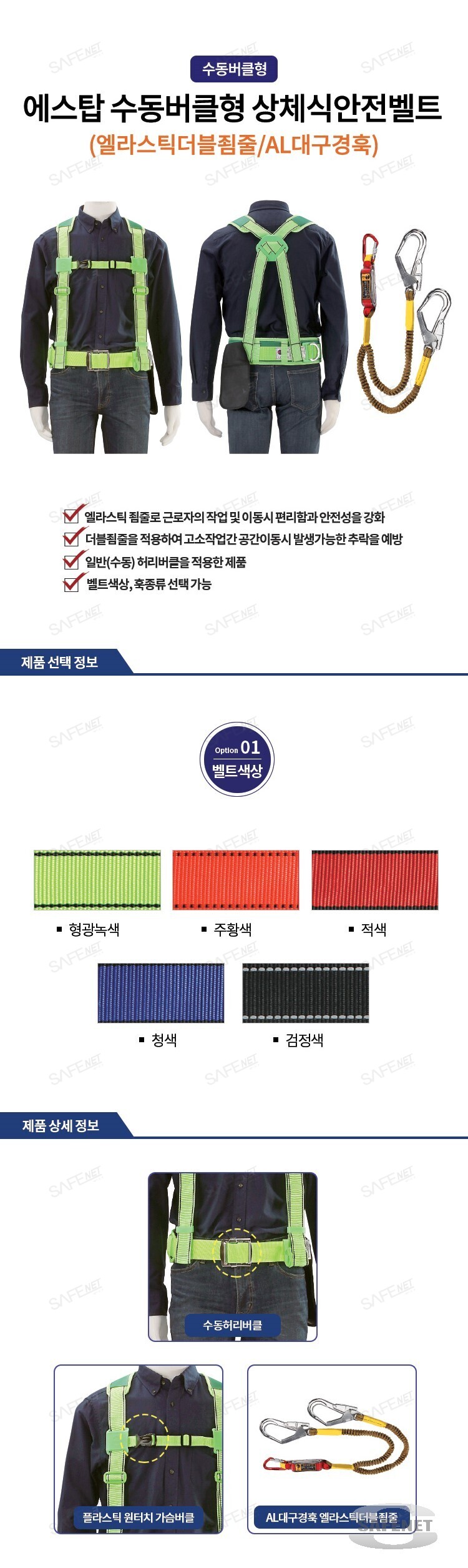 에스탑 수동버클형 상체식안전벨트 (엘라스틱더블죔줄/AL대구경훅)