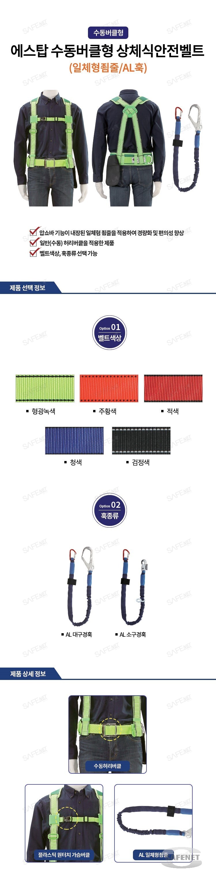 에스탑 수동버클형 상체식안전벨트 (일체형죔줄/AL훅)