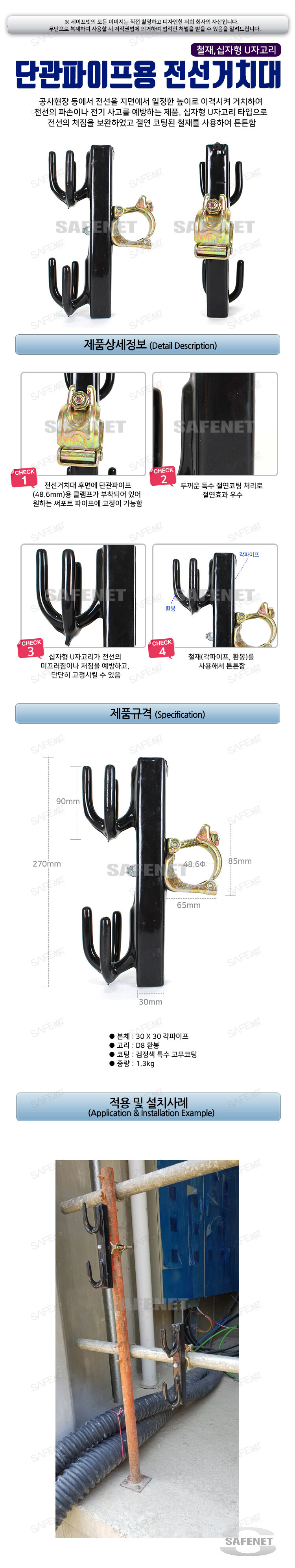 단관파이프용 전선거치대(철재,십자형U자고리,특수고무코팅)