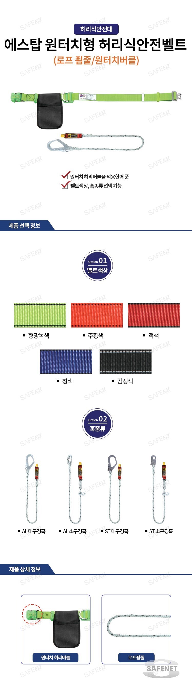 에스탑 원터치형 허리식안전벨트 (로프죔줄/원터치버클)