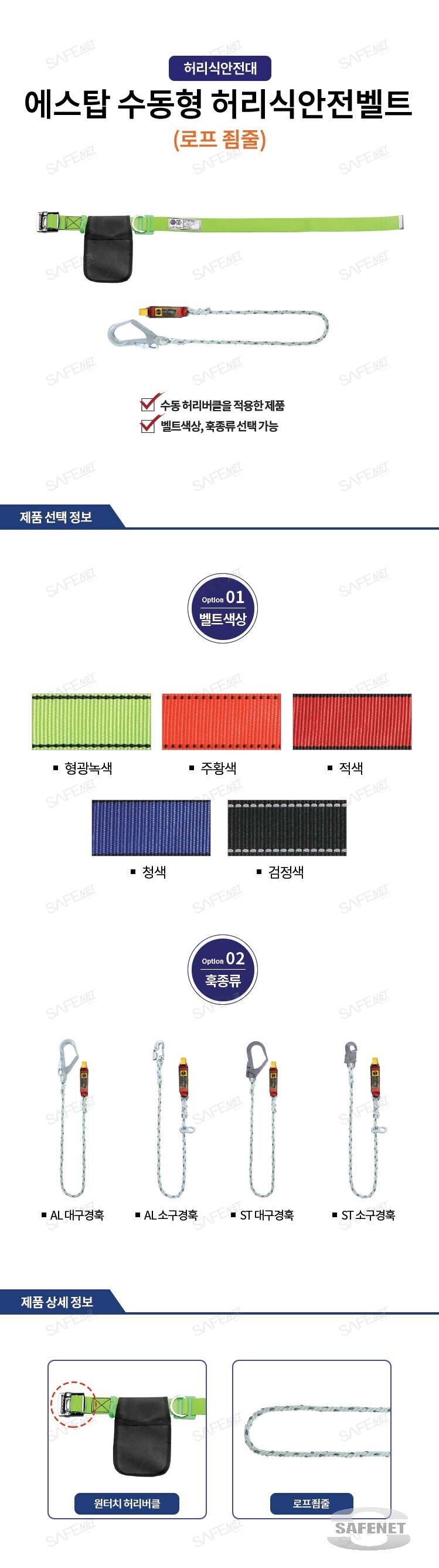 에스탑 수동형 허리식안전벨트 (로프죔줄)
