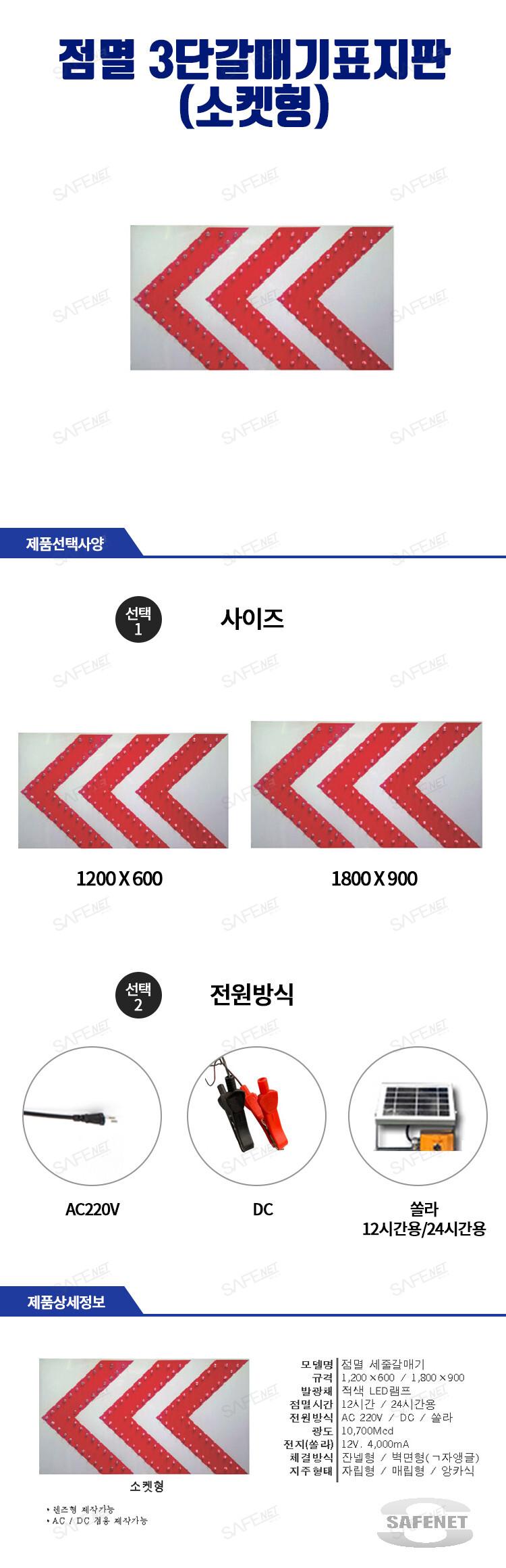 점멸 3단갈매기표지판 (소켓형)