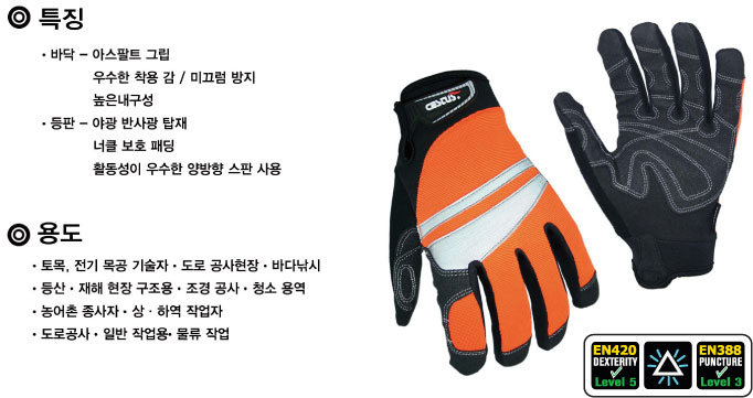 • 바닥,손끝/케브라원단 사용 높은 내구성, 미끄럼방지