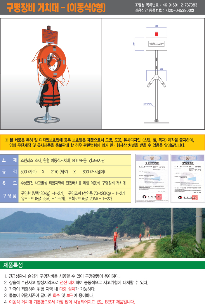 규격 원형이동식거치대, 가로(500) * 높이(2170)
