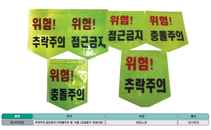 종류 : 추락주의,접근금지,출입금지,낙하물주의 외 16종