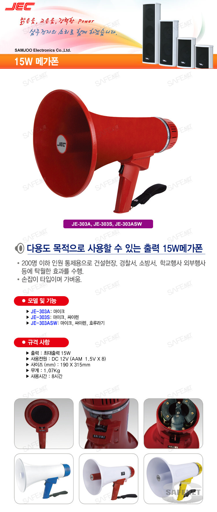 15W 메가폰 (JE-303A,JE-303S,JE-303ASW)