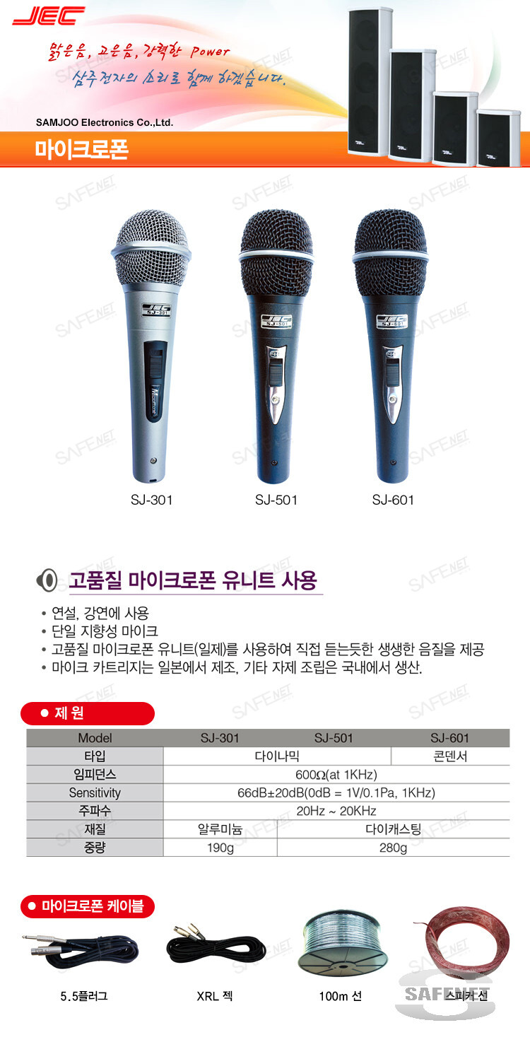 고품질 마이크로폰 유니트 사용ㅁ 연설, 강연에 사용 ㅁ 단일 지향성 마이크 ㅁ 고품질 마이크로폰 유니트(일제)를 사용하여 직접 듣는듯한 생생한 음질을 제공 ㅁ 마이크 카트리지는 일본에서 제조, 기타 자제 조립은 국내에서 생산