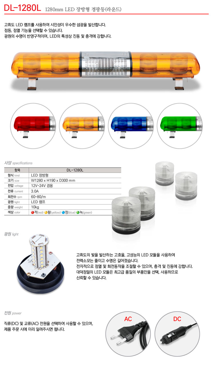고휘도 LED램프를 사용하여 시인성이 우수한 섬광을 발산합니다.