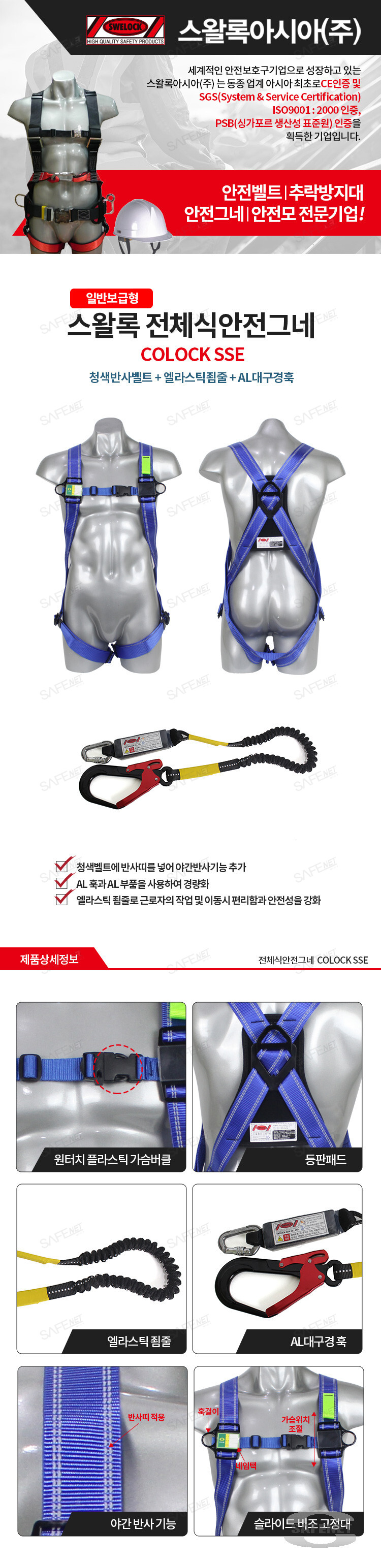 스왈록 일반보급형 전체식안전그네 COLOCK SSE (엘라스틱죔줄/AL대구경훅)