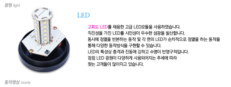 점멸과 회전동작을 선택할 수 있는 버튼이 내장되어 있습니다.