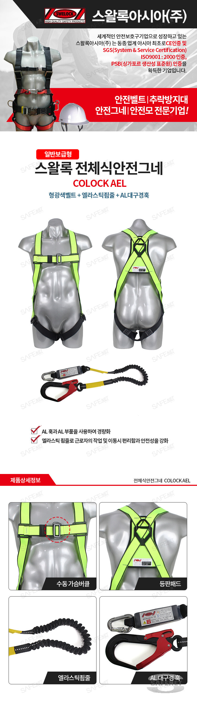 스왈록 일반보급형 전체식안전그네 COLOCK AEL (엘라스틱죔줄/AL대구경훅)