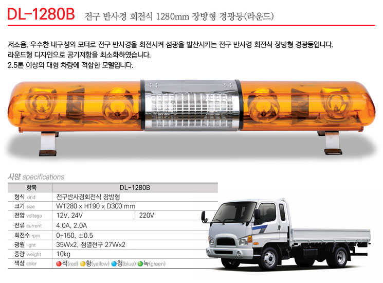 저소음, 우수한 내구성의 모터로 전구 반사경을 회전시켜 섬광을 발산시키는 전구회전식 장방형 경광등입니다.