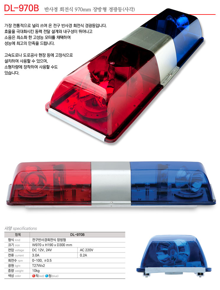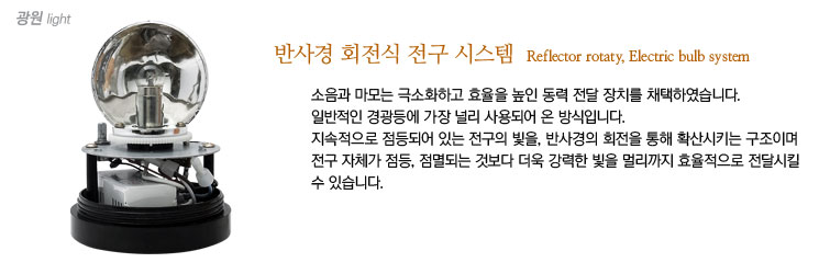 가장 전통적으로 널리 쓰여온 전구방사경 회전식 경광등입니다.