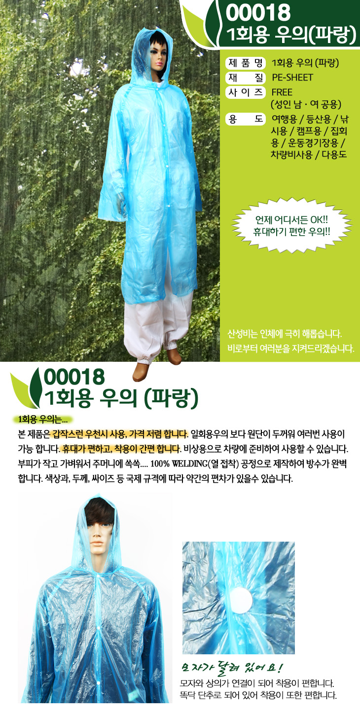 모델명 00018일회용우의(파랑)