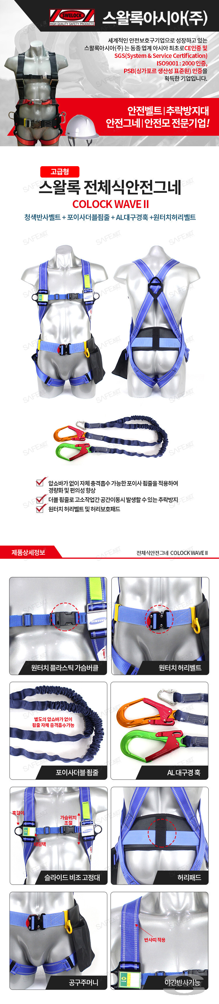 스왈록 고급형 전체식안전그네 COLOCK WAVE II (포이사더블죔줄/AL대구경훅)