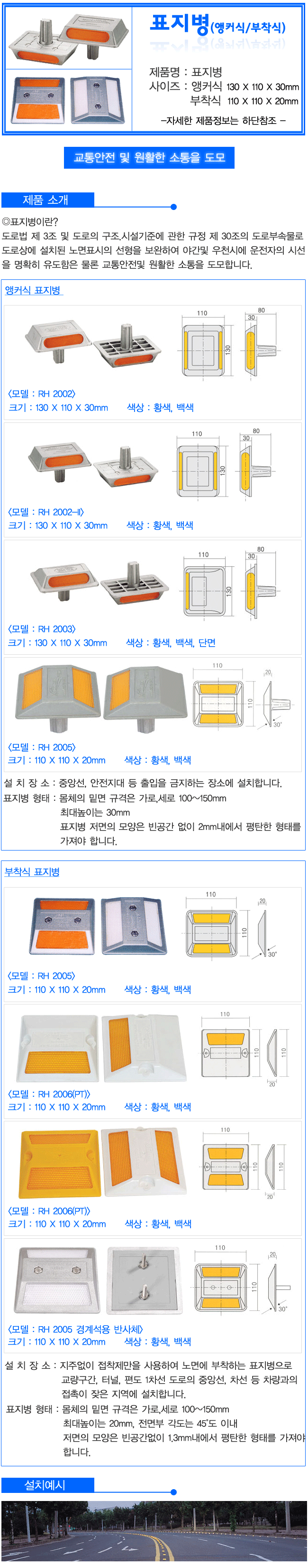 *  지주없이 접착제만을 사용하여 노면에 부착하는 표지병