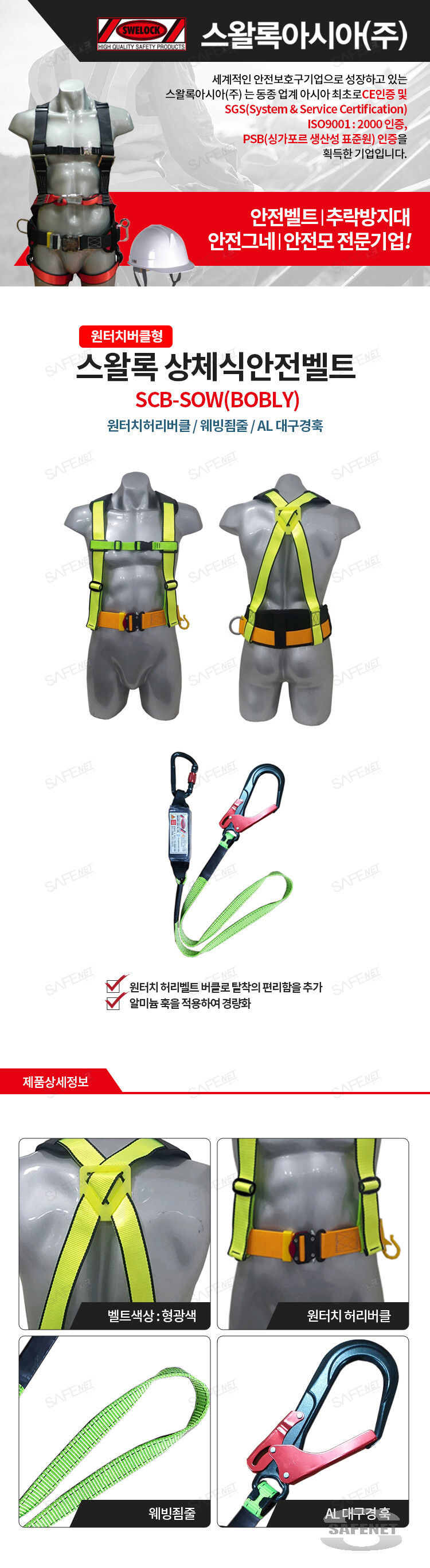 스왈록 원터치버클형 상체식안전벨트 SCB-SOW(BOBLY) 웨빙죔줄