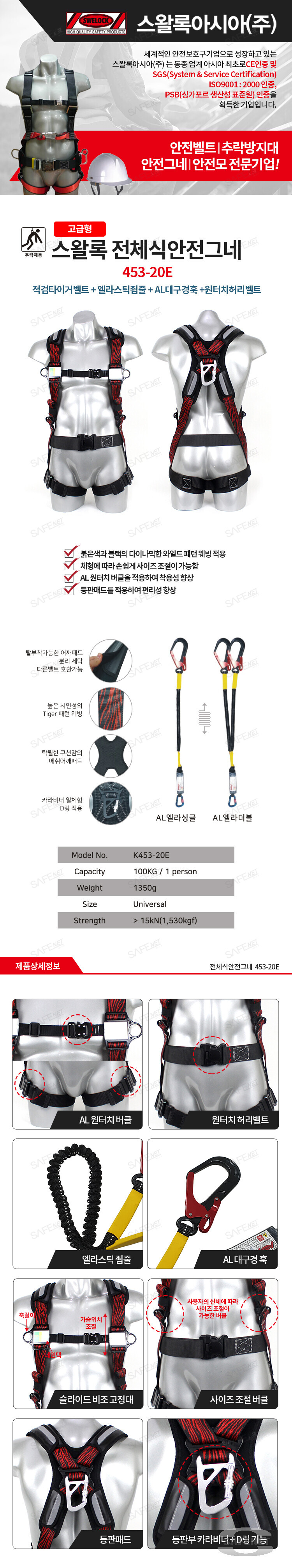 스왈록 고급형 전체식안전그네 K453-20E (엘라스틱죔줄/AL대구경훅)