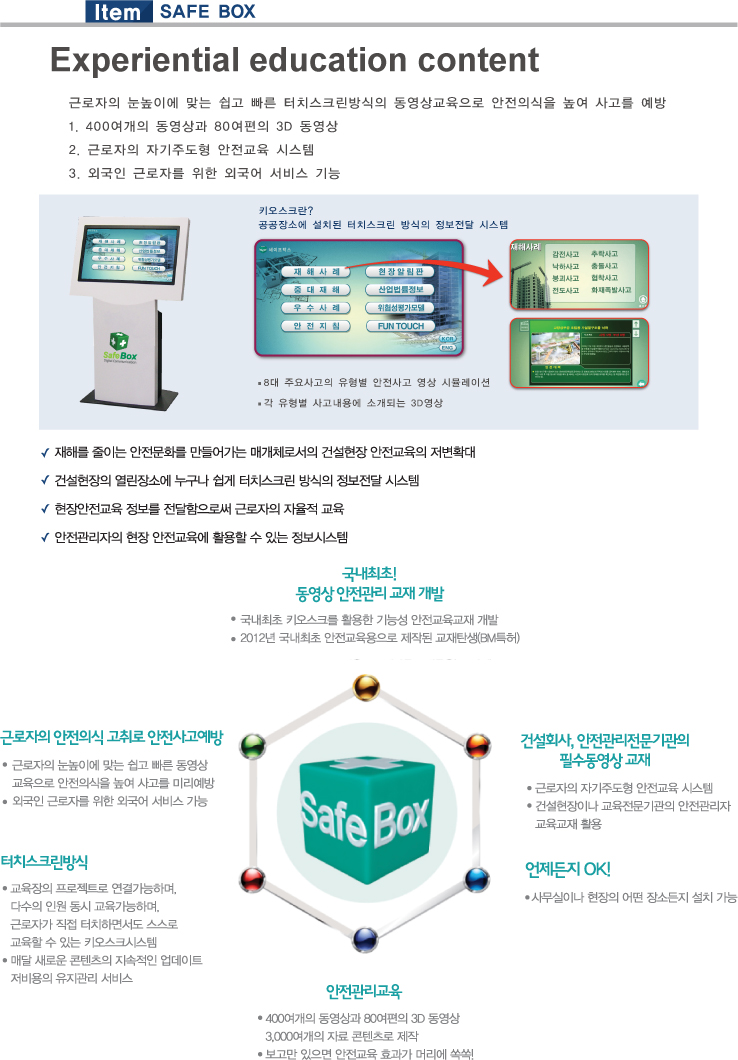 근로자의 눈높이에 맞는 쉽고 빠른 터치스크린방식의 동영상교육으로 안전의식을 높여 사고를 예방