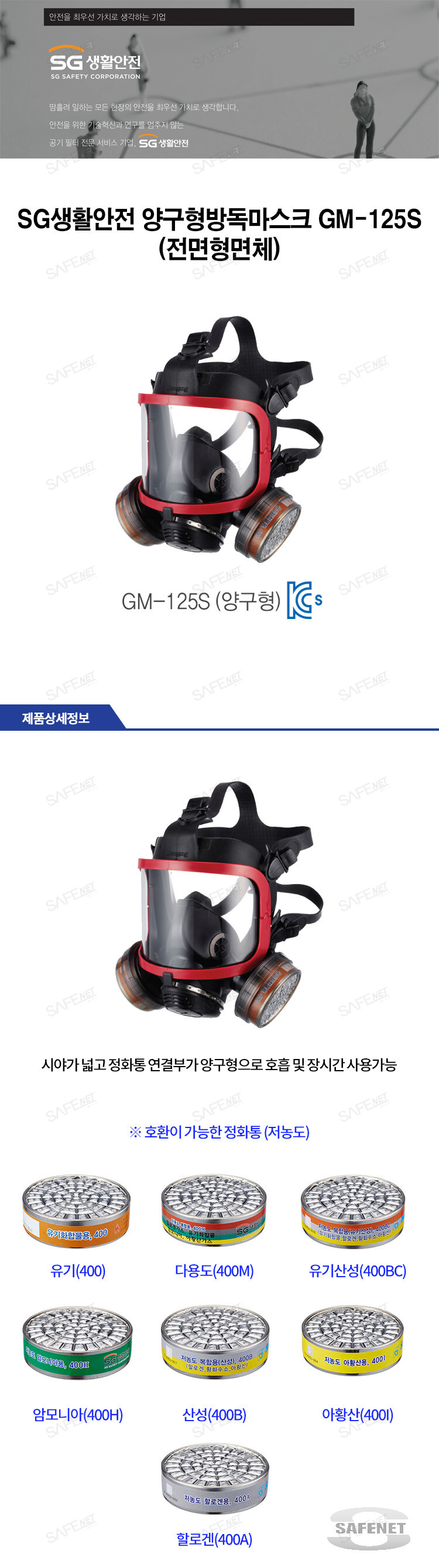SG생활안전 양구형방독마스크 GM-125S (전면형면체)